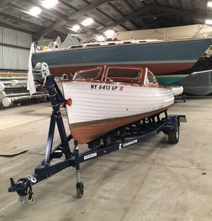 Recently completed restoration work addressing all typical Lyman ills includes the replacement of a keel section from Knee to amidships, the lower half of the mahogany transom, rudder block and all questionable planking. Newly rebuilt in 2021 Greymarine 109 engine, gearbox and ancillaries…run less than 15 hours. New freshwater cooling system, making her suitable for fresh and saltwater use. 12V system with new wiring. New sunbrella cushions, bimini top, full mooring cover and winter cover. All required safety gear, including 4 Mustang inflatable life vests. A new custom Loadmaster trailer properly supports the hull structure.