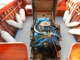 With 1988 305 chevy Pleasure Craft 4bbl Engine re-built 1998, boat interior stripped re-stained, varnished, bottom seams west system. 1998 Load Rite dual axle trailer w/ front rollers, double bunks @ side, bearing buddies, spare tire. Windshield replaced 2003, decks in 2007 by Androscoggin Wooden Boat Works. 2011 aluminum fuel tank, stainless steel stringer brackets. Numerous seat cushions, life jackets, anchors, fenders, hand-held marine radios, water skis, tubes and lines, Bimini top. In water in Hull, Mass.