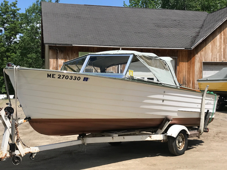 Some interior refinish work done on seats and transom in recent years, recent rewiring. Ready for a little more refinishing.This boat is sound, we have stored the boat here for a number of years and remove the floor boards each year, for bilge cleaning and storage. Full canvas top . Built in fuel tank. On trailer ready to go. Located in Scarborough Maine.