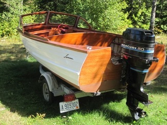 1950 13′ Lyman Ideal – $7,500 Rebuilt and restored for the original owner in 2003. Boat received all new Ribs, stem, keel transom and seats.