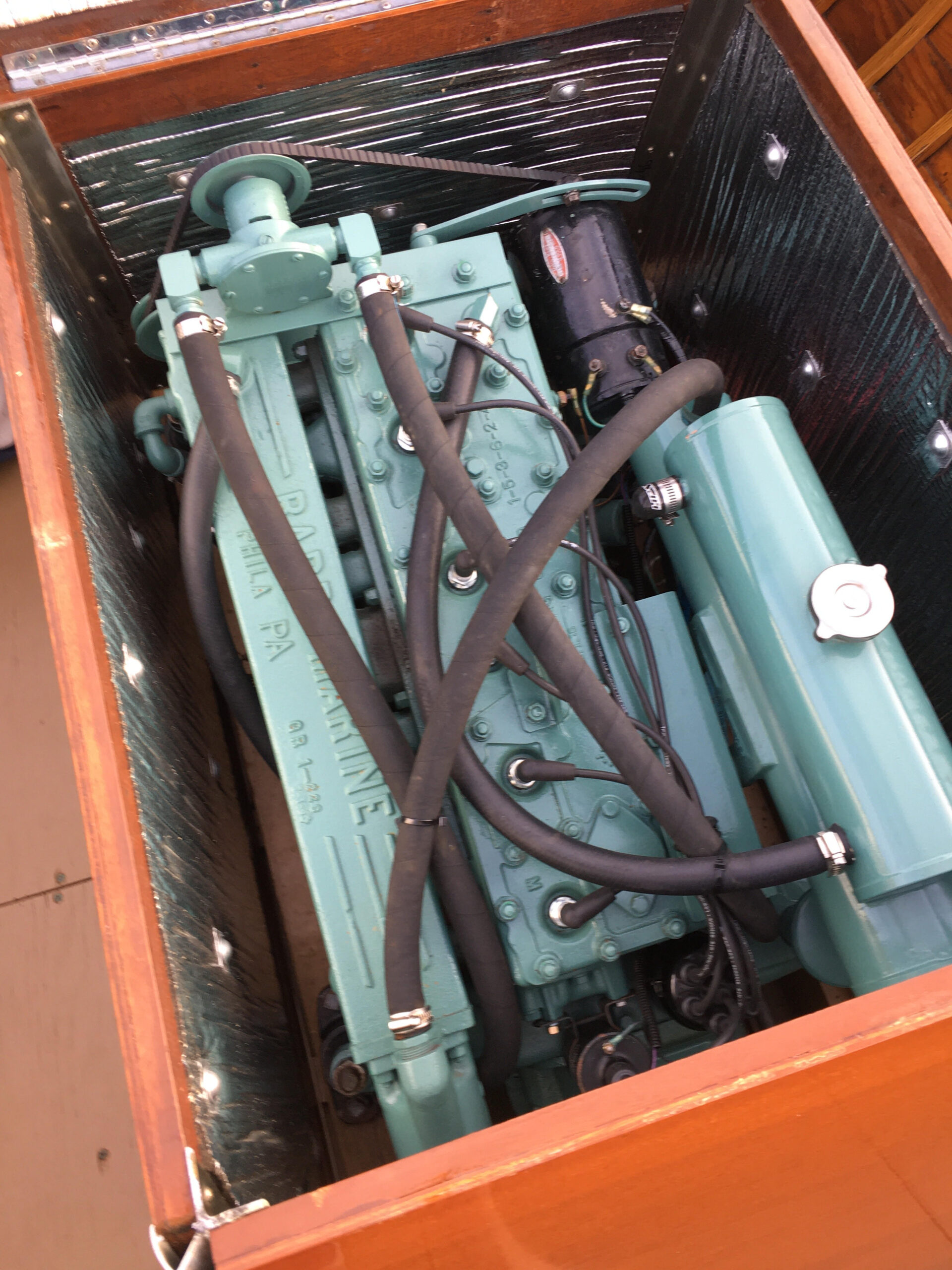 Completely redone, Bottom stepped to bare wood, Painted with salt water bottom paint, Hull sides also have fresh white paint, recent deck varnish. Original 318