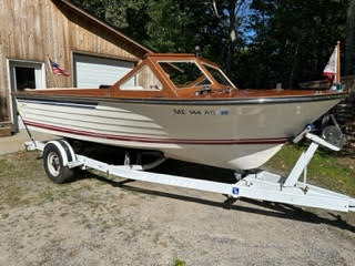 1951 13′ Lyman fisherman. Complete restoration included new decks and gunwales  some new frames and completer refinish. Can come with motor pictured which is a1958